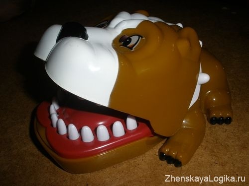 Раз уж заговорили о товарах для детей, которые можно приобрести в интернет-магазине, то нелишне упомянуть и нашу собаку. Её я покупала в интернет-магазине, в прошлом году, выбрав только одну игрушку и присоседившись к чужому заказу. На фотографии игрушка выглядела, как большая мягкая собака. Я видела такие, поэтому решила, что наш мальчик с удовольствием поиграет с плюшевым псом. Получив посылку, мы все, включая ребёнка, были, мягко говоря, в шоке. В коробке лежала пластмассовая собачка размером с котёнка! И не столько размер нас шокировал, сколько то, что она сделана из пластмассы. Дело в том, что это не просто собака: она захлопывает пасть, если нажать на определённый зуб. При этом зуб каждый раз будет разным. Нам – взрослым игрушка кажется забавной, мы часто по очереди нажимаем на зубы, кого укусит – тот проиграл. А вот малыш, увы, боится, хотя она кусается совсем небольно.