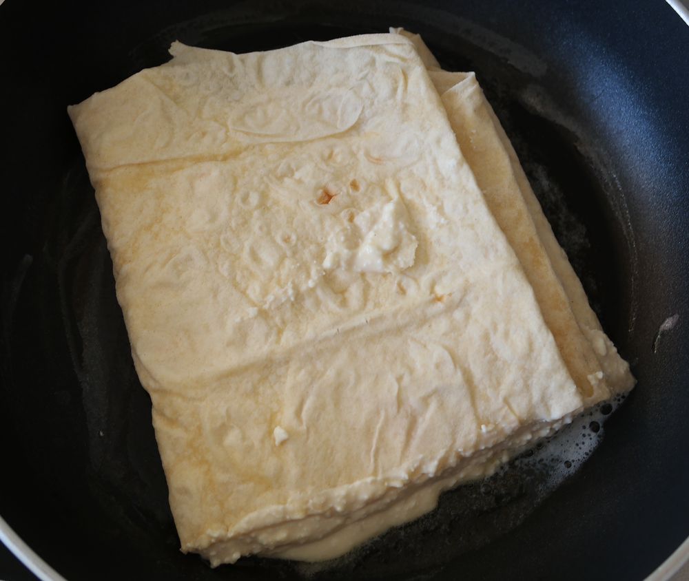 Сладкая запеканка из лаваша и творога на сковороде